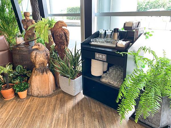 一進門的右手邊有自助台,可以自行倒水、取用衛生紙,抽屜放有各式餐具。