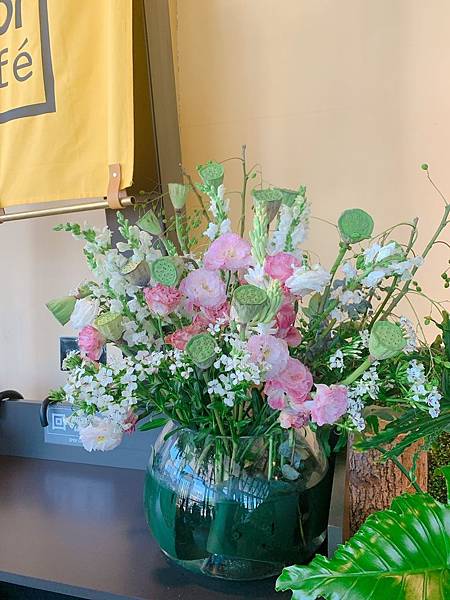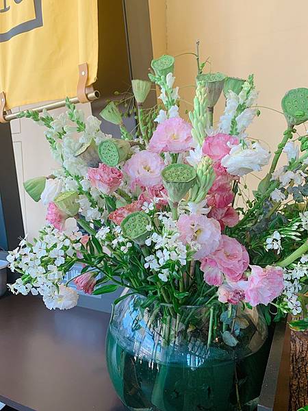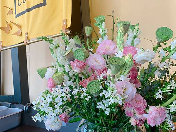 很難得會看到蓮蓬的插花,而且都是真花喔!